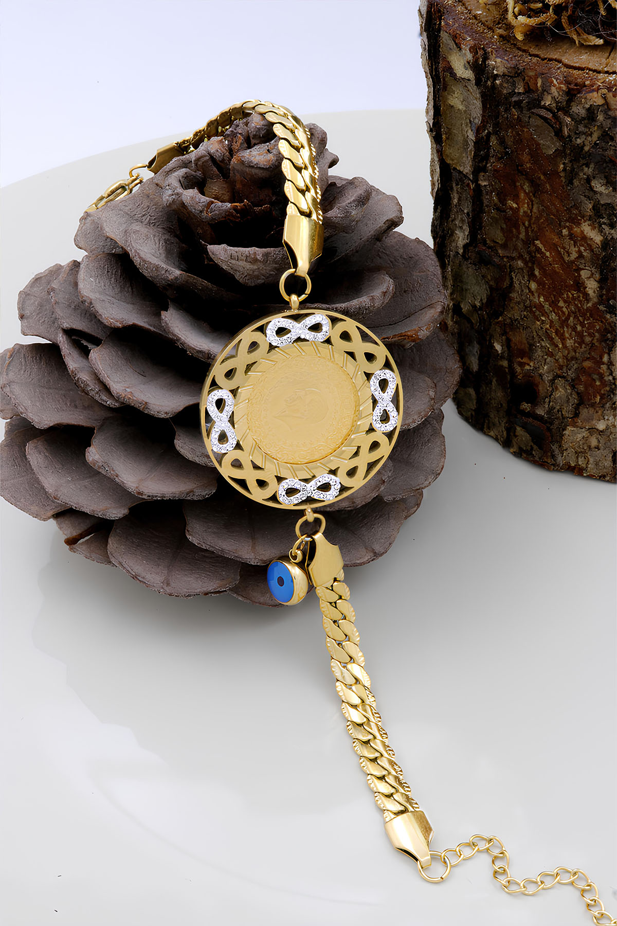 22 Ayar Çeyrek Altınlı Çelik Zincirli Sonsuzluk Motifli Bileklik